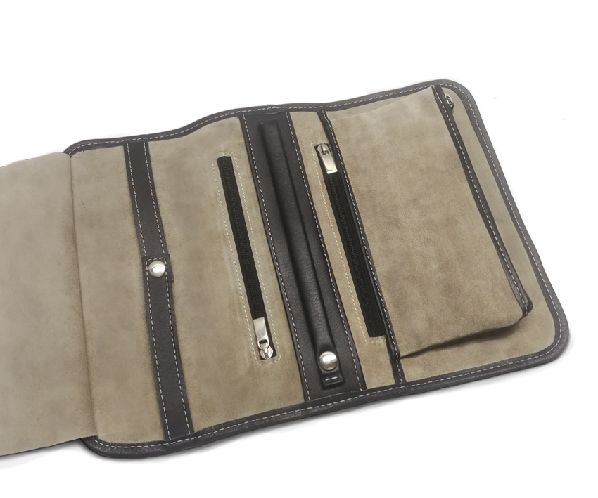 Hablamos de un estuche capaz de reunir y ordenar en un mismo espacio el móvil y el reloj. Multiples compartimentos para alojar todos los accesorios tanto del móvil como del smart watch.