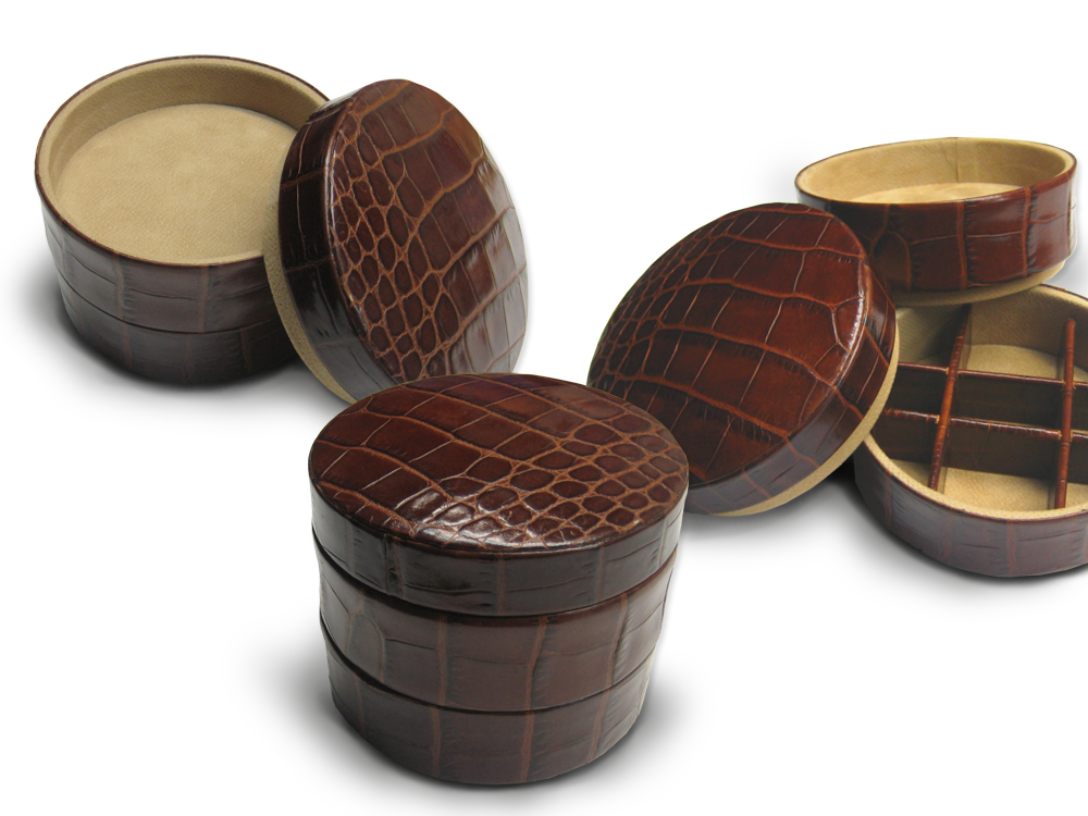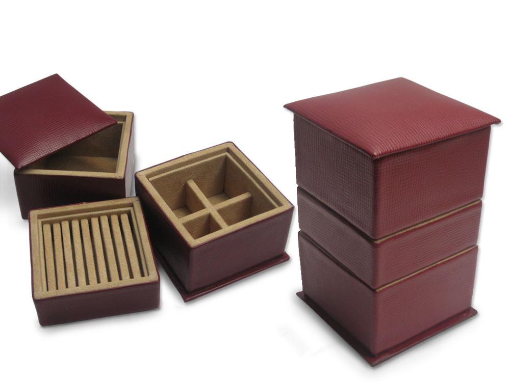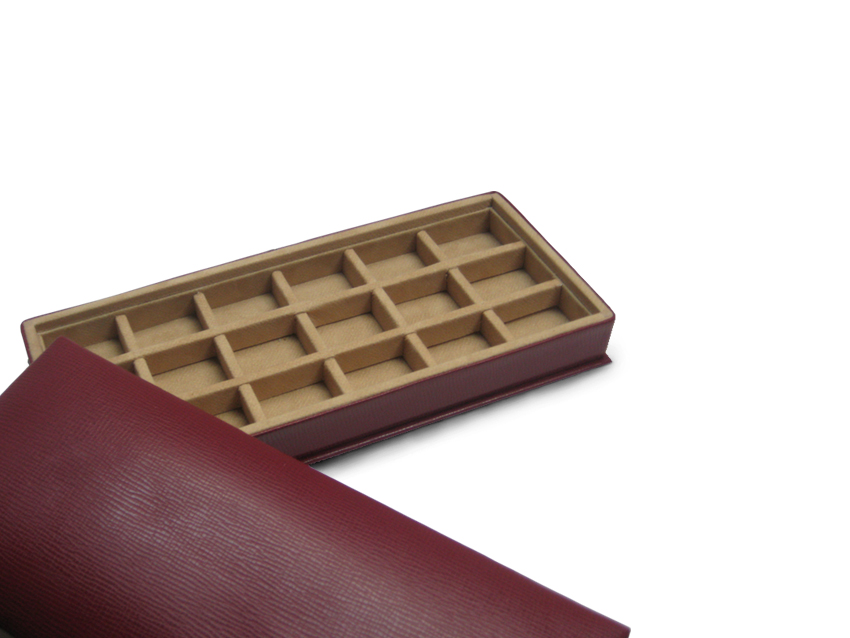 Estuches para relojes -Bateas – Joyeros de viaje – Estuches para gemelos, pendientes y anillos – Bandejas para presentaciones de productos.
